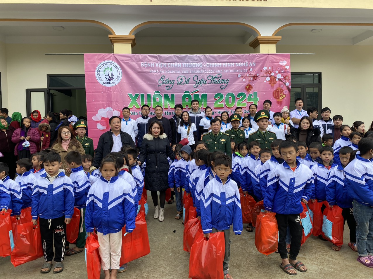 Dịp này, Bệnh viện Chấn thương - Chỉnh hình Nghệ An đã trao tặng 194 suất quà cho học sinh Trường Mầm non và Trường Tiểu học Tam Quang 2 và một số cơ sở vật chất, đồ dùng cho trường mầm non; trao 10 suất quà cho học sinh đặc biệt khó khăn cùng 50 phần quà cho các gia đình hoàn cảnh khó khăn. Tổng cả chương trình khám, cấp thuốc và trao quà giá trị hơn 140 triệu đồng.