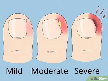Các biểu hiện thường gặp khi móng chân mọc ngược được chia thành 3 giai đoạn: